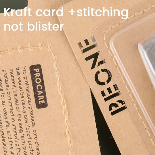 - Environmentally friendly packaging:Kraft card +stitching , not blister.